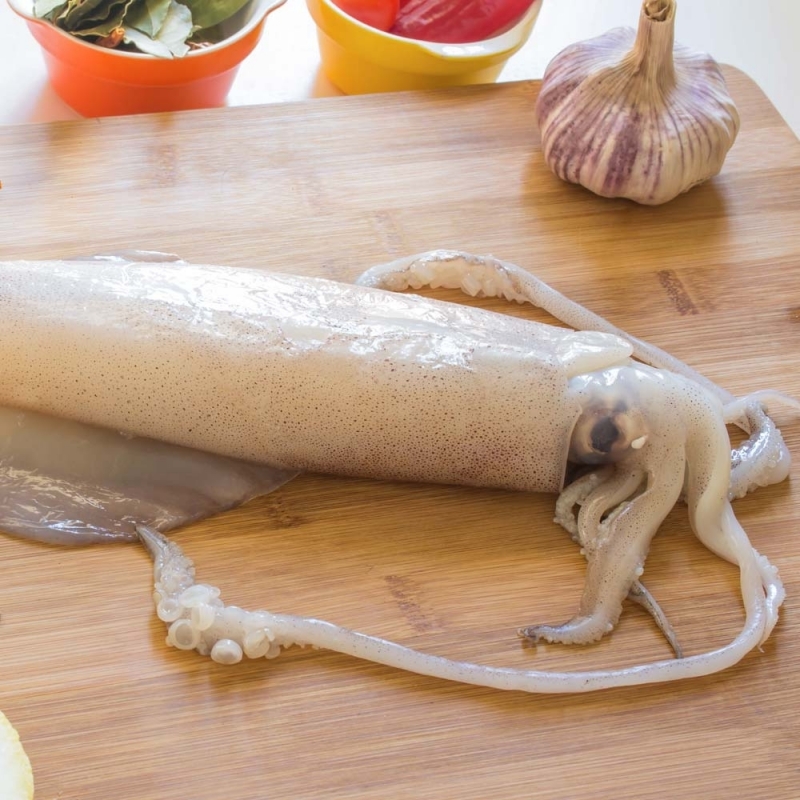 Delicioso calamar presentado envuelto individualmente en piezas de 300 a 500 gramos (aprox.). Su precio de venta es por kilogramo.