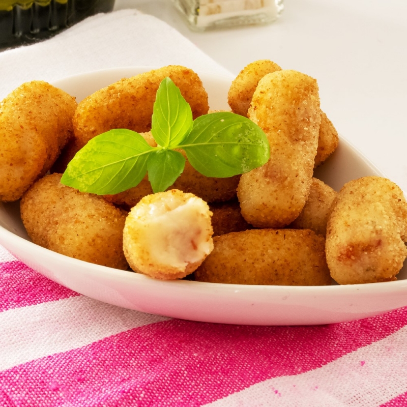 El aperitivo clásico por excelencia, croquetas de jamón, en tamaño mini para poder disfrutarlas más.